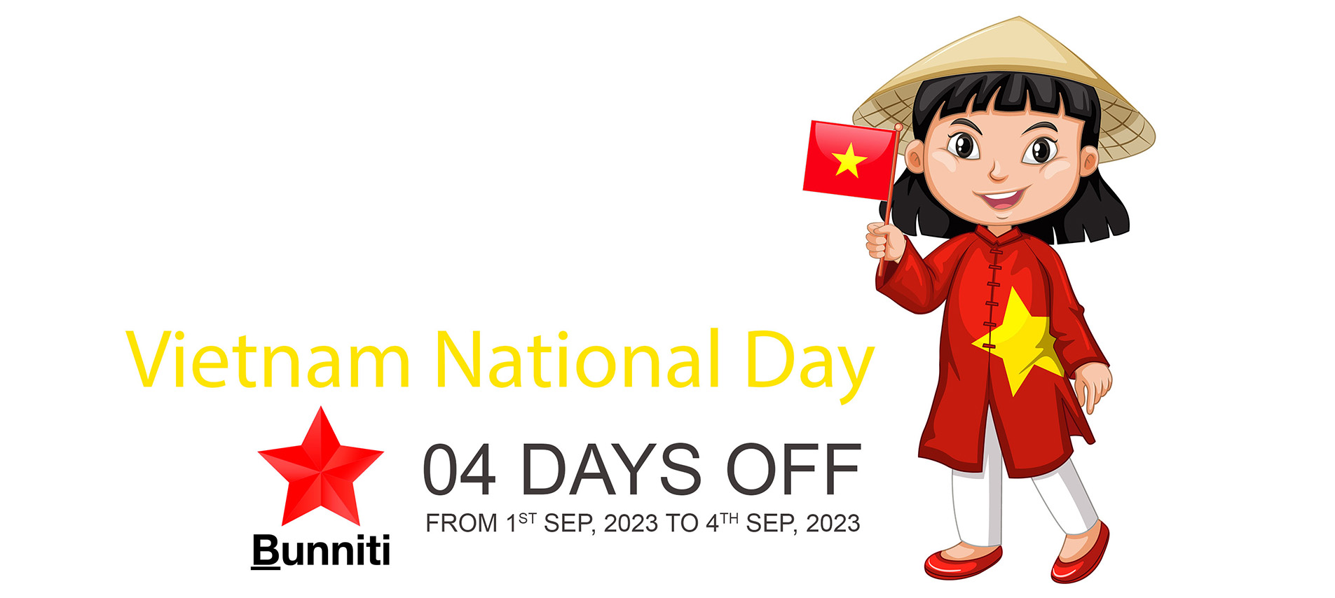 Bunniti would like to announce our operational schedule during upcoming Vietnam National Day as follows: