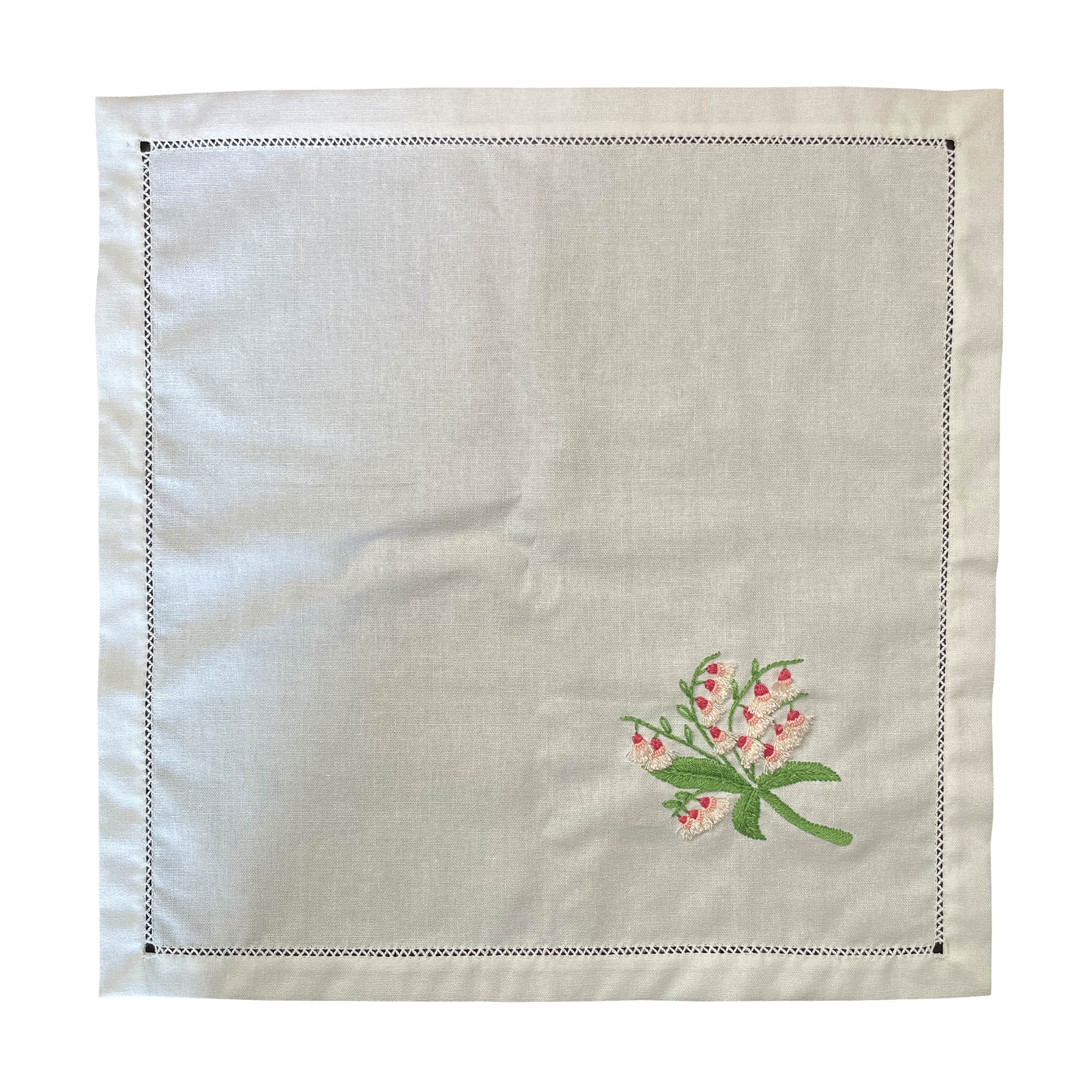 We offer you full support in the design, logo customize, choice of fabric quality... Just give us your ideas!Handmade napkin with delicate embroidery details by Bunniti's Skillful Craftsman.